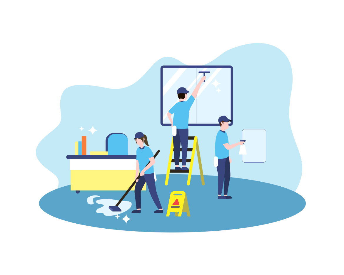 Иногда коммерческой организации невыгодно держать штат сотрудников по уборке офиса, тогда фирма обращается в клининговую компанию. В офисных помещениях большой поток людей, из-за этого быстро загрязняются дверные ручки, перила, лифты. Помимо видимых загрязнений на поверхностях могут оставаться возбудители инфекций. Поэтому уборка офиса предполагает применение дезинфицирующих средств, соответствующих санитарным нормам.
